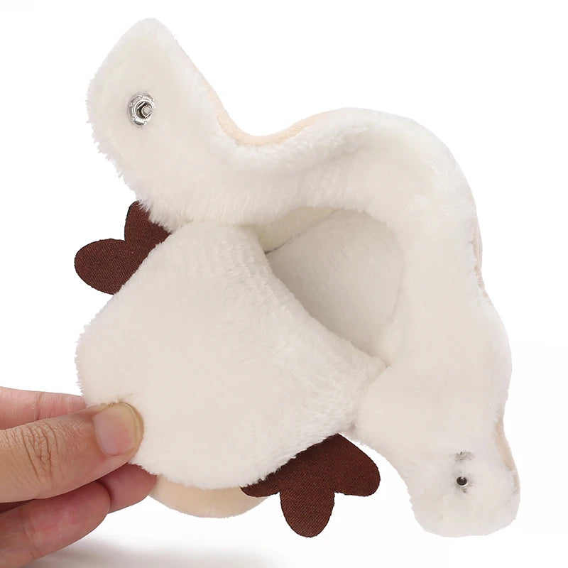 Let your little one step into Christmas magic with our Cream Reindeer Baby Boots – the cosiest festive footwear for babies this season. These plush boots are crafted in a soft, fluffy cream material with a sweet reindeer face embroidered on the front, complete with 3D ears and an adorable red nose. Snap buttons on the side make dressing a breeze, while soft grip soles support little feet as they crawl, stand, or take their first steps.