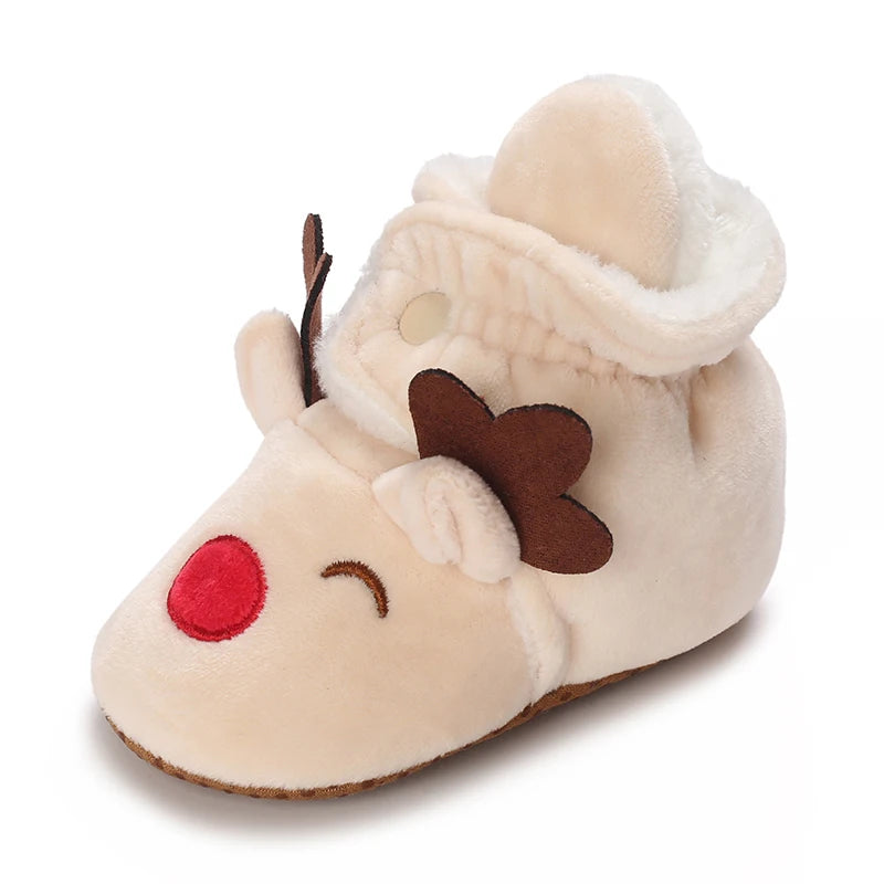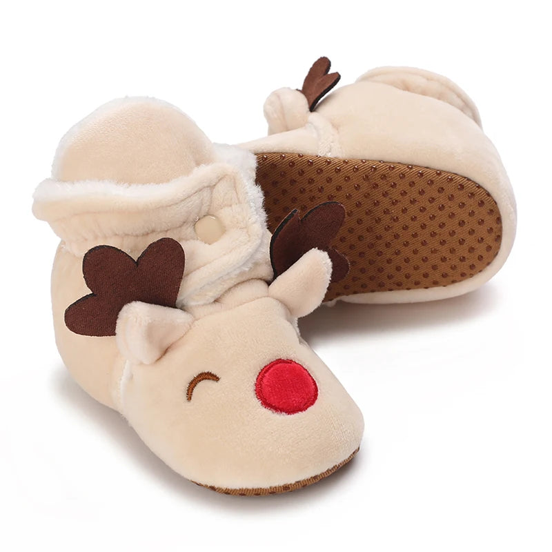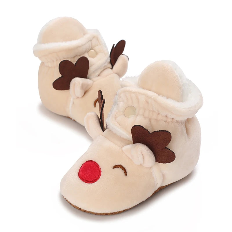 Cream Reindeer Baby Boots – Soft Sole Christmas Booties