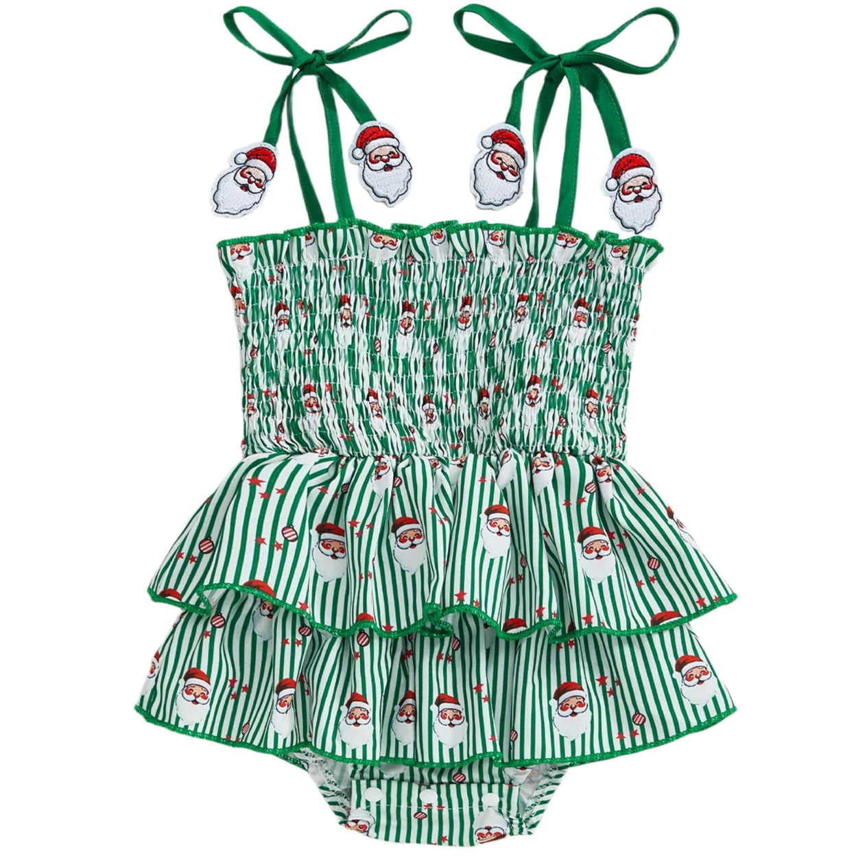 Baby Girl Christmas Peplum Romper – Green & White Santa Stripes