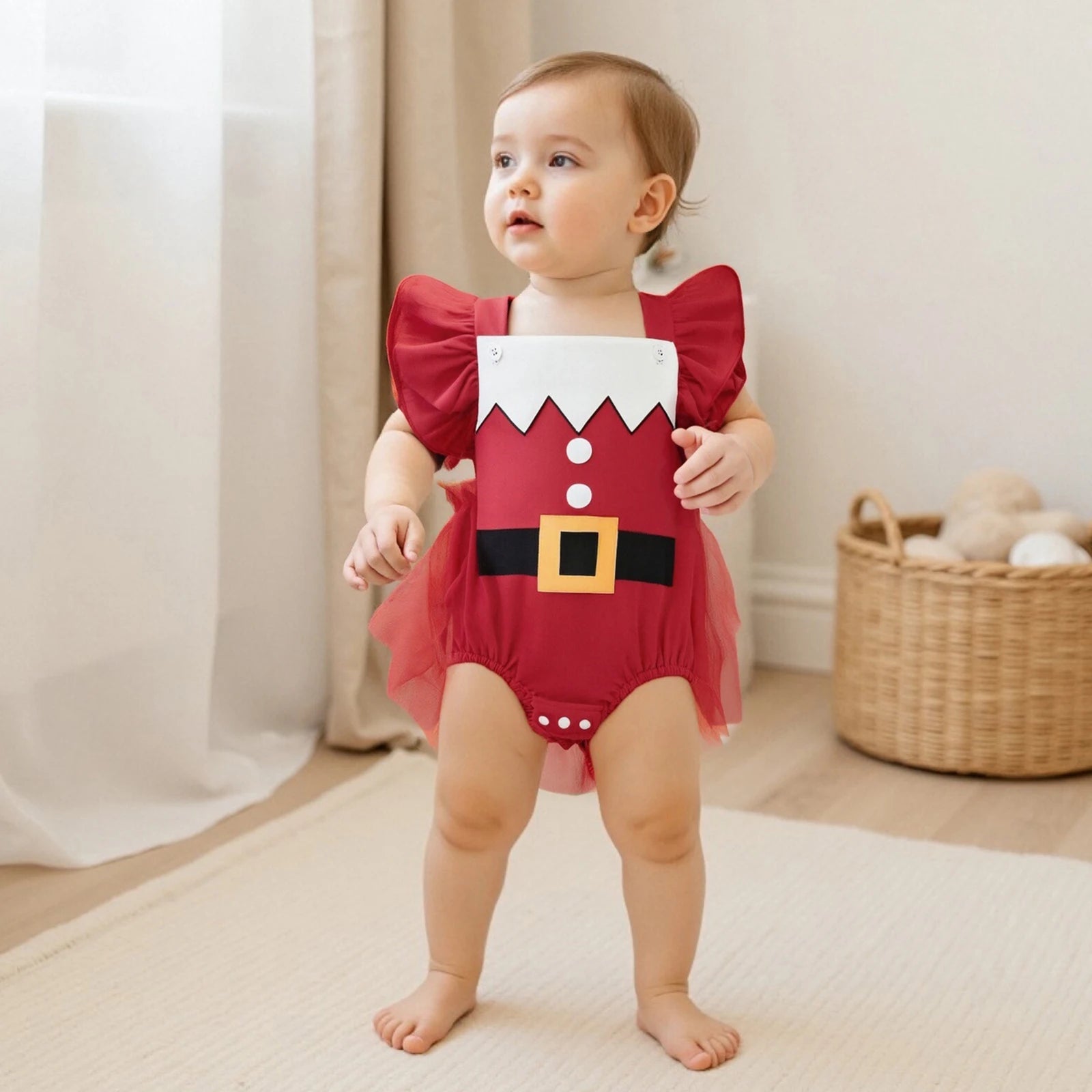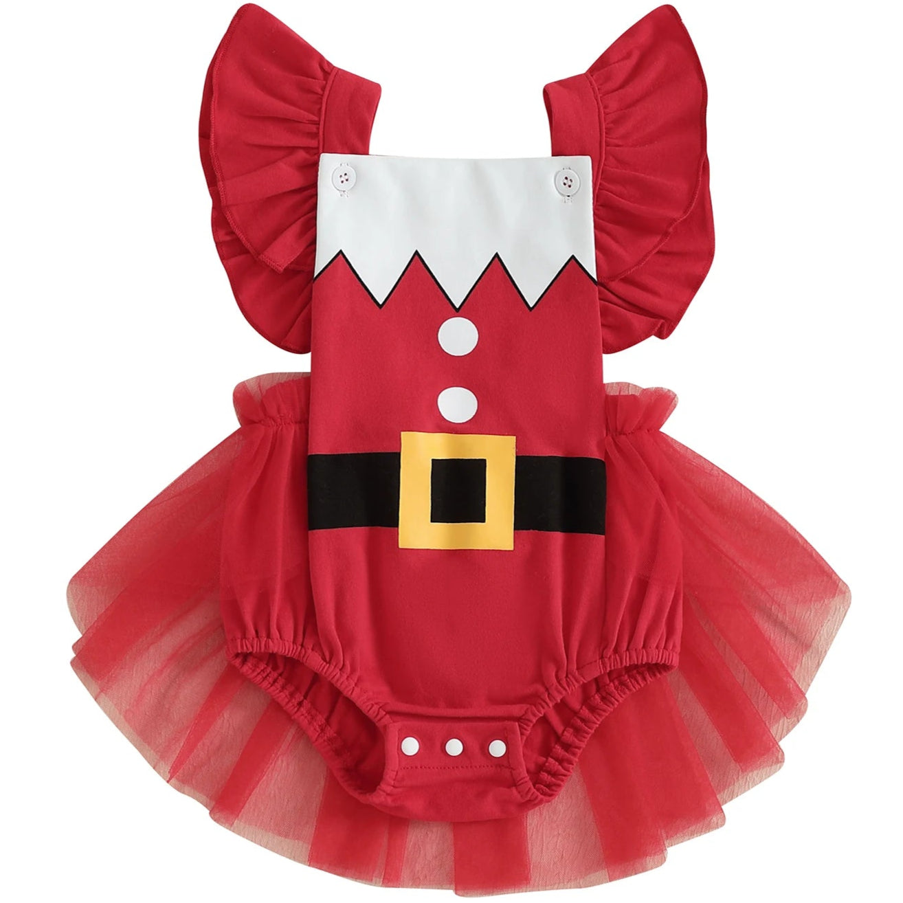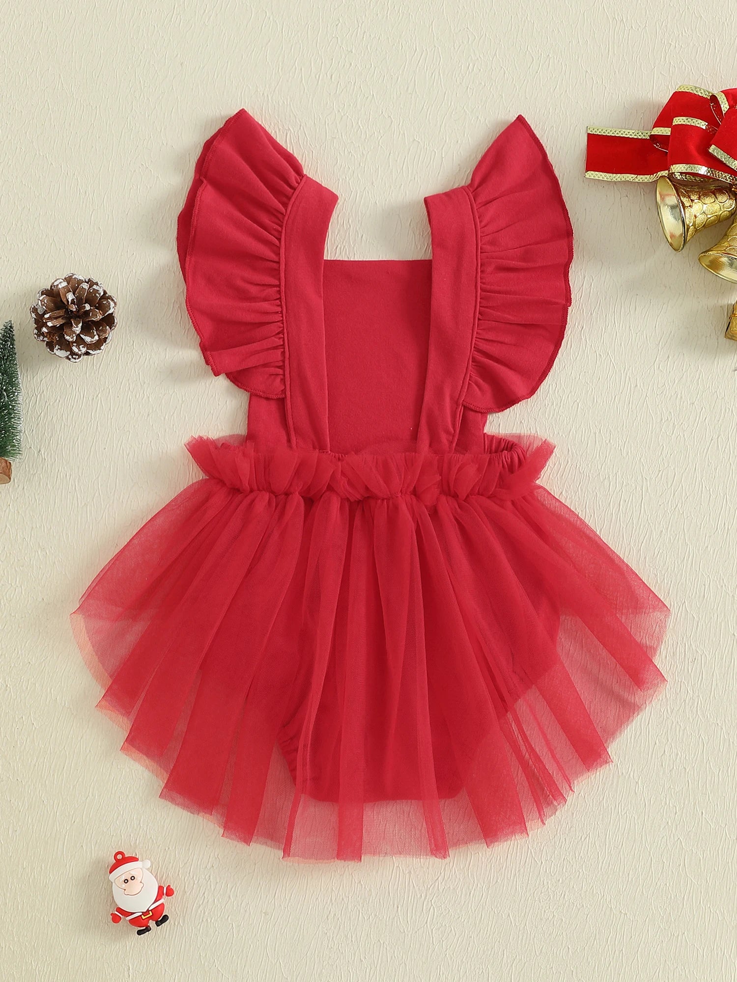 The back straps are fixed and non-adjustable, adding a touch of elegance while keeping the romper securely in place. Ideal for Christmas day, Santa photos or your baby’s first holiday season.