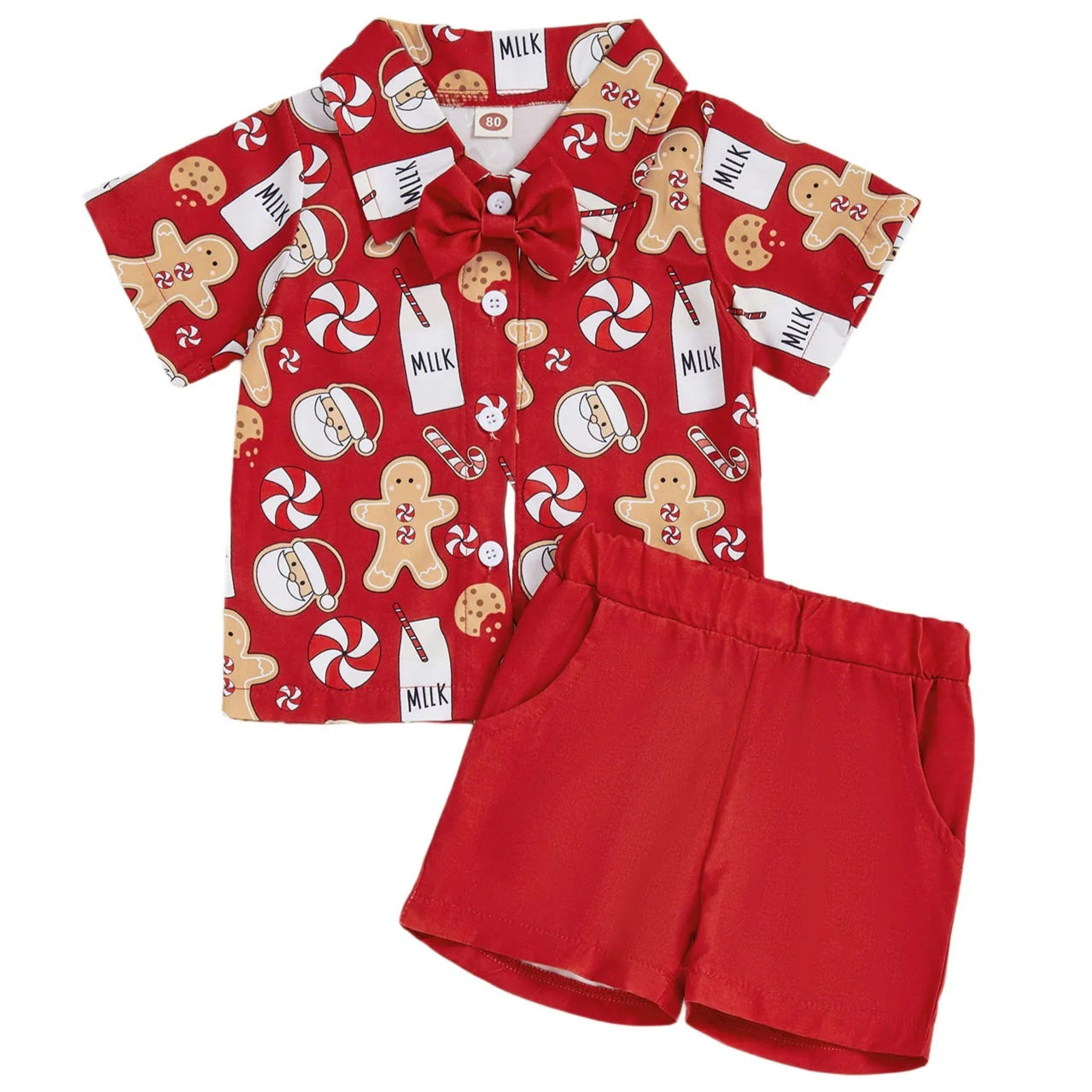 Santa Milk & Candy Christmas Set – Red Top + Red Shorts + Bowtie