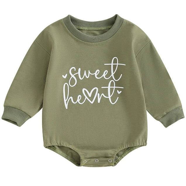 Green Sweet Heart Bubble Romper Long Sleeve | Little Eedie