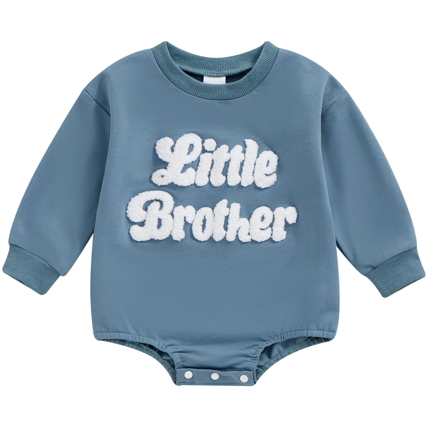 Little Brother Blue Romper – Long Sleeve Baby Boy Outfit | Little Eedie
