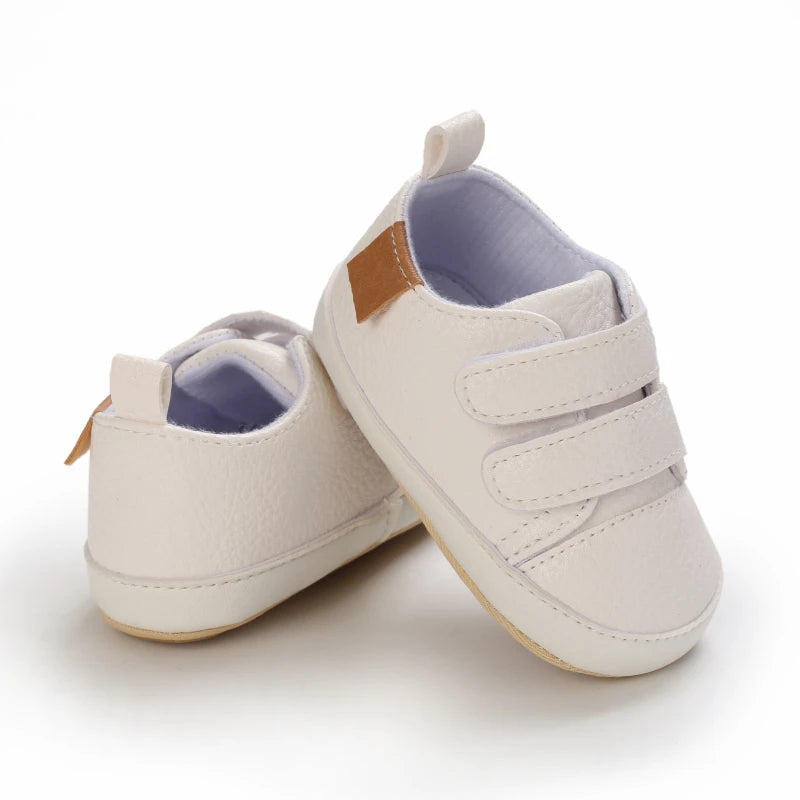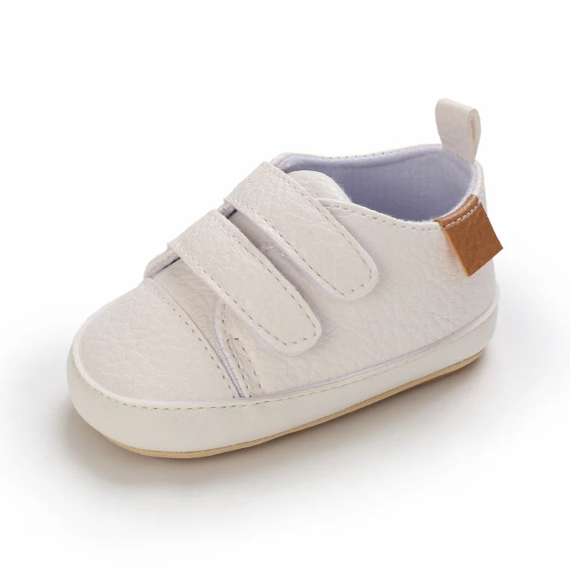 Our Mason Baby Shoes in white are a classic choice for your baby's first steps. Designed with soft, flexible soles, they support healthy foot development. The secure fit ensures they stay on, and the pristine white color adds a touch of elegance to any ensemble.