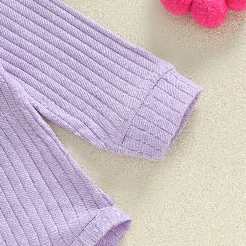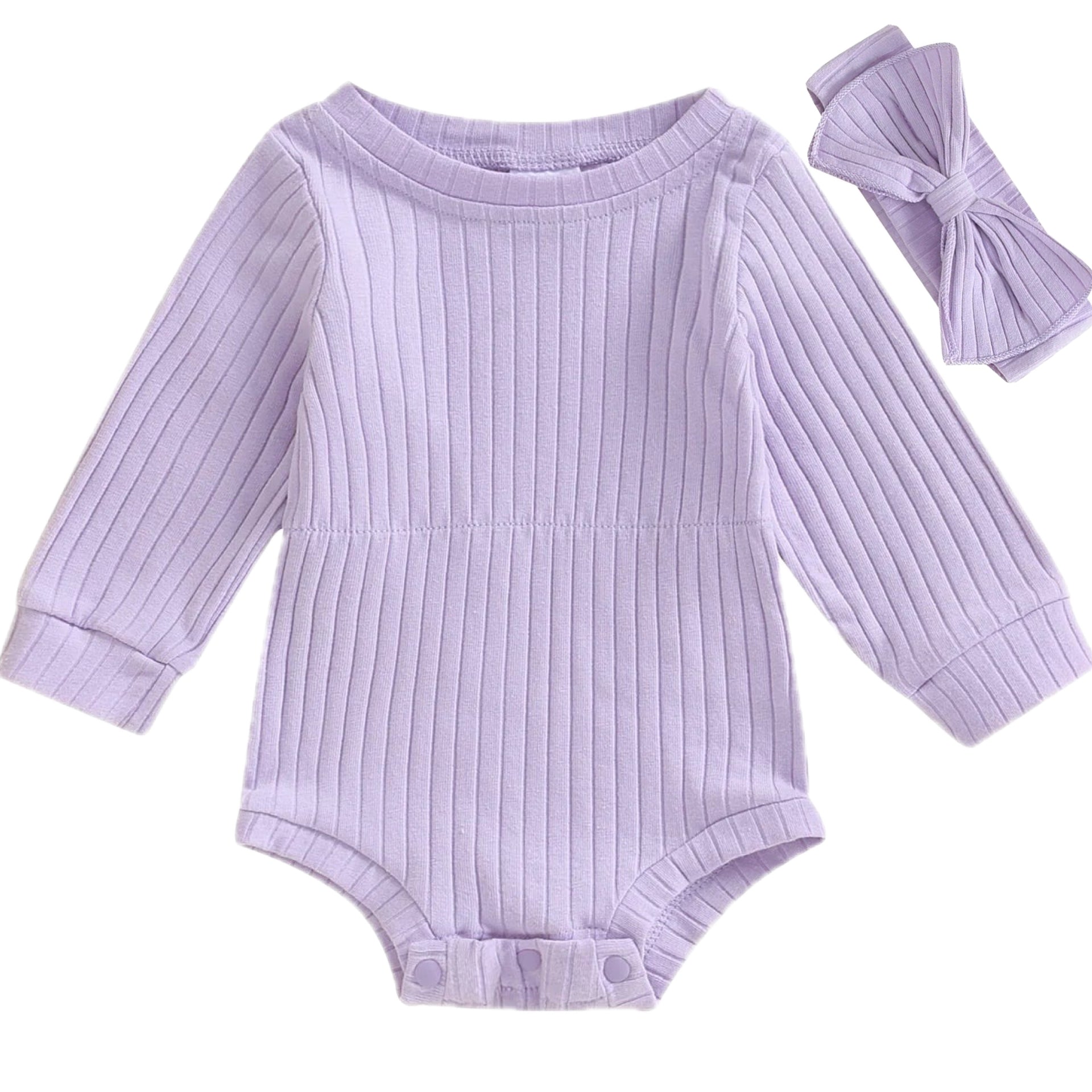 Add a playful touch to your baby girl's wardrobe with our beautiful Purple Ribbed Romper Set. This romper blends comfort and cuteness with long sleeves, breathable ribbed cotton, and easy snap clips for quick outfit changes. The soft stretch fabric ensures bub can move freely, while the coordinating purple topknot headband adds an extra sprinkle of charm.