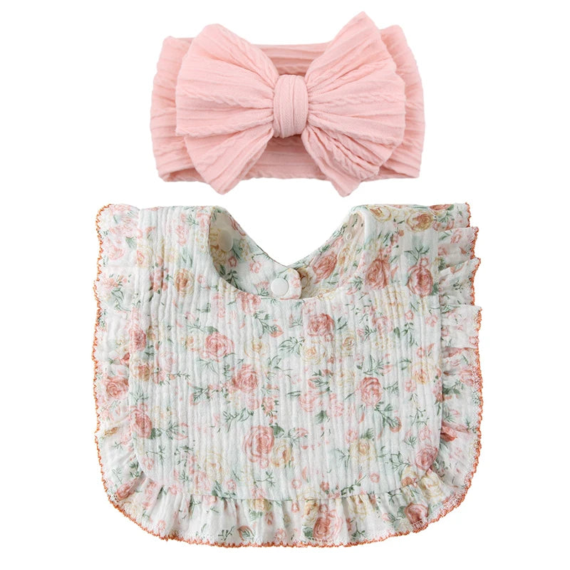 Lily Baby Pink Textured Bow & Floral Ruffle Bib Set