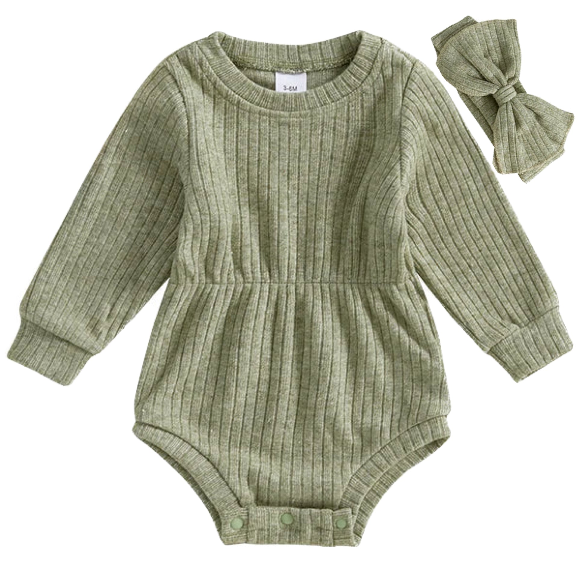 Mali Ribbed Romper Green | Baby Girl Romper | Little Eedie