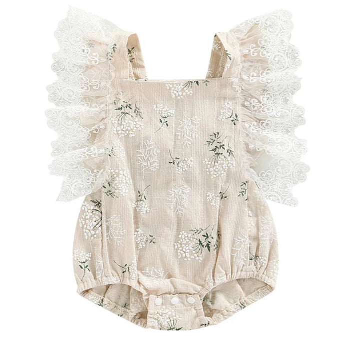 Floral Lace Baby Romper Cream