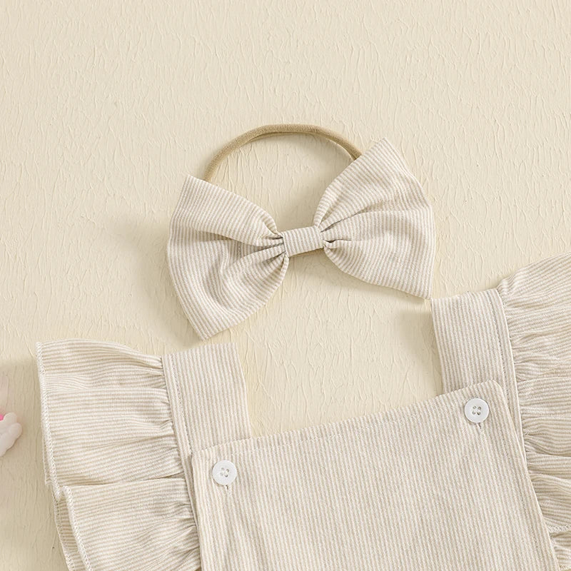 Little Eedie Candy Flutter Baby Girl Romper in cream. With matching headband.