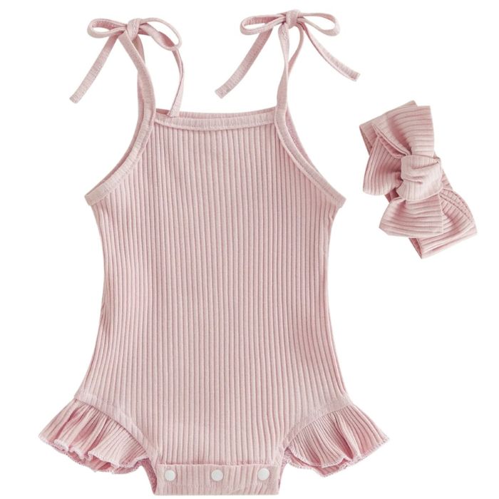 Introducing our Jemma Romper in Pink! Crafted with soft, ribbed cotton, and featuring a delicate headband and tie accents, your baby girl will look absolutely adorable and feel comfy in this light weight piece. Add a touch of sophisticated elegance with its fragrant ruffles, and make lasting memories!