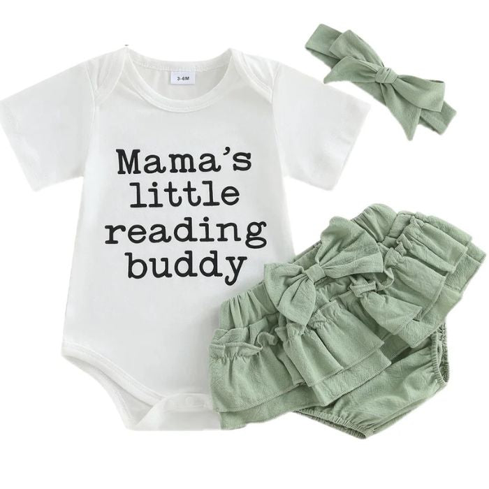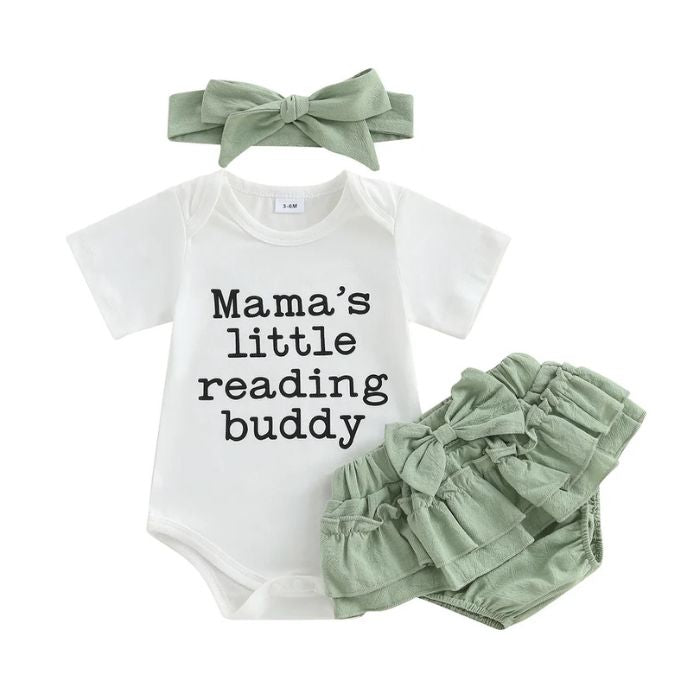 Mama's Little Reading Buddy! An adorable set with sweet little ruffles.