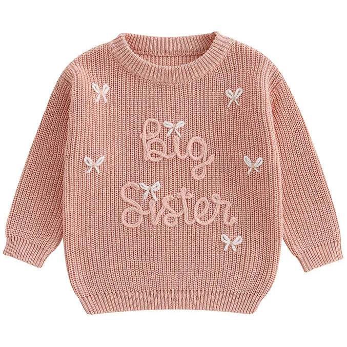 The relaxed fit and stretchy ribbed cuffs ensure comfort, while the quality knit makes it a wardrobe staple for cooler days. Whether layered over leggings or paired with a skirt, this jumper is a sweet and thoughtful piece that celebrates sisterhood in style.