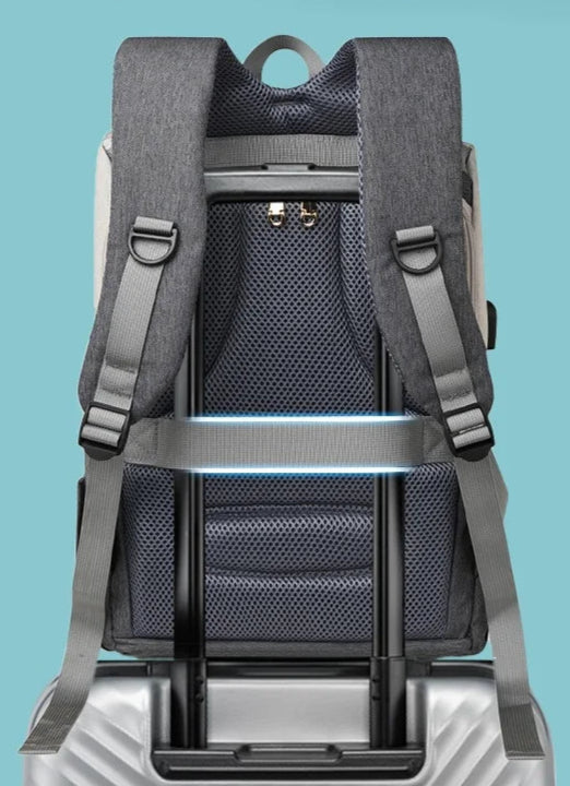 Hands-Free Carrying: Adjustable padded backpack straps and a secure luggage sleeve for travel convenience.
