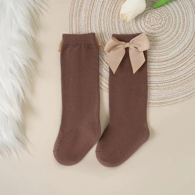 Adorable little bow socks in Brown.