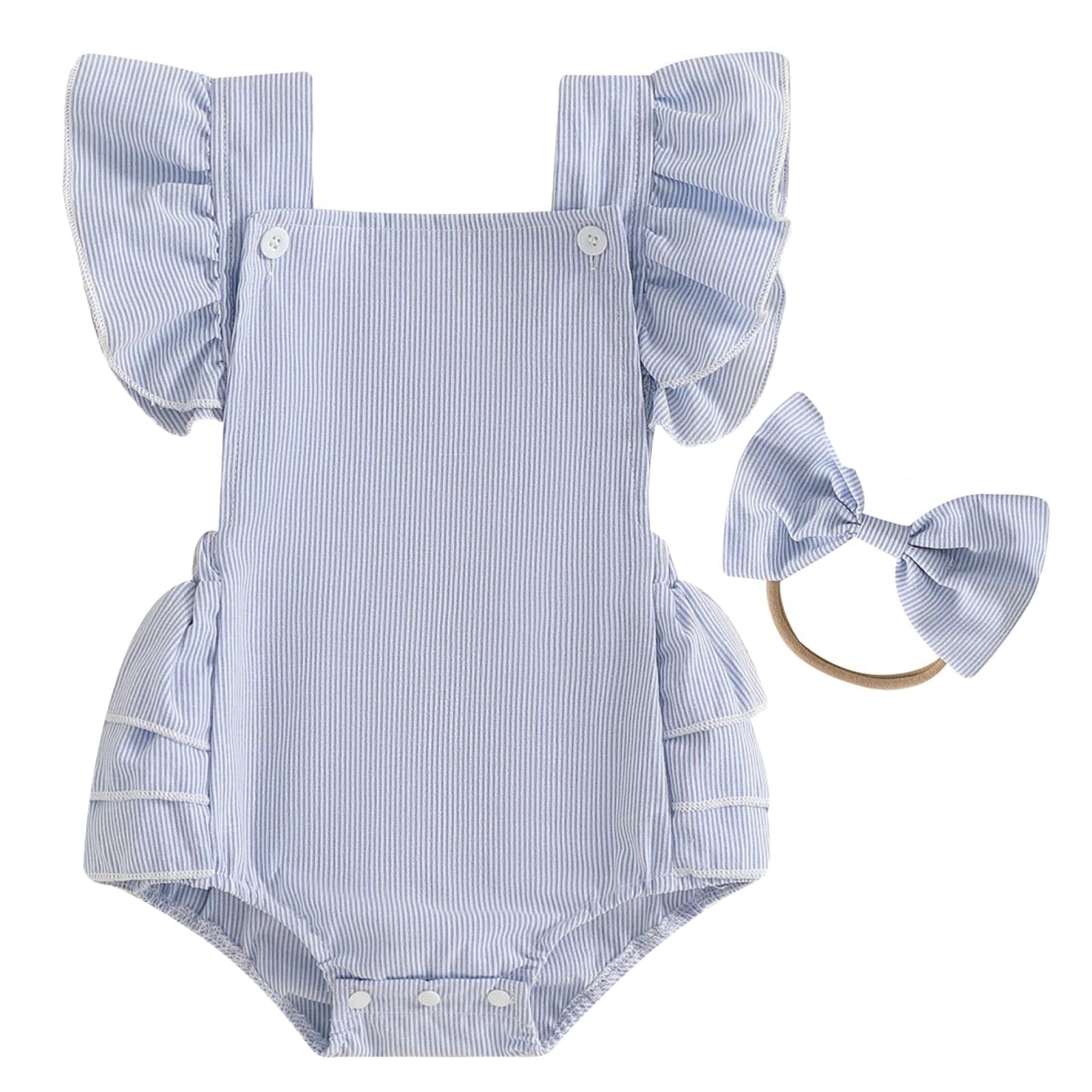 Little Eedie Candy Flutter Baby Girl Romper in pastel blue. With matching headband.
