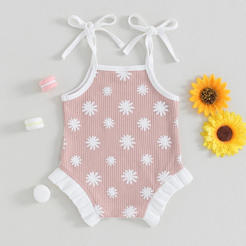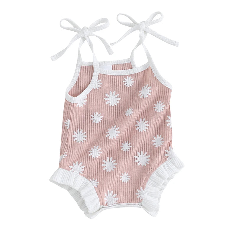 Daisy Tie Strap Baby Girl Romper Pink