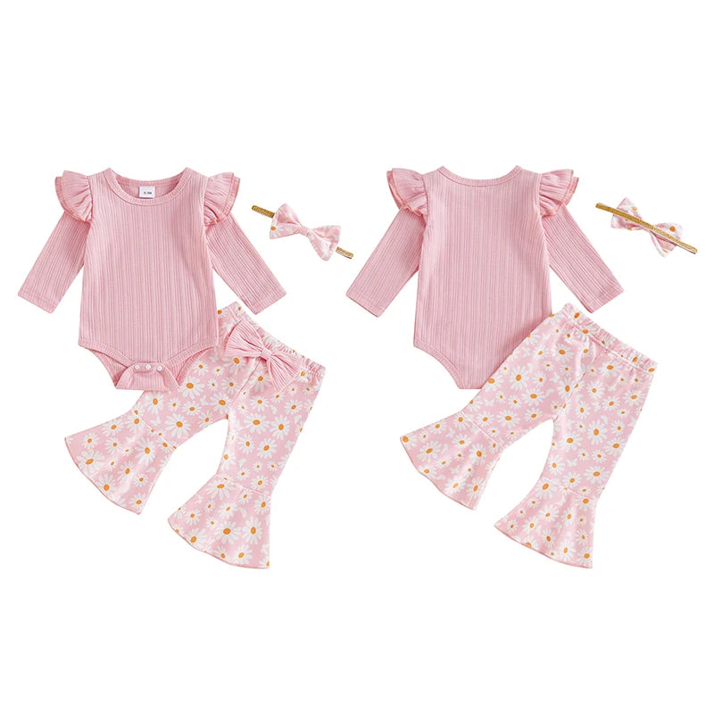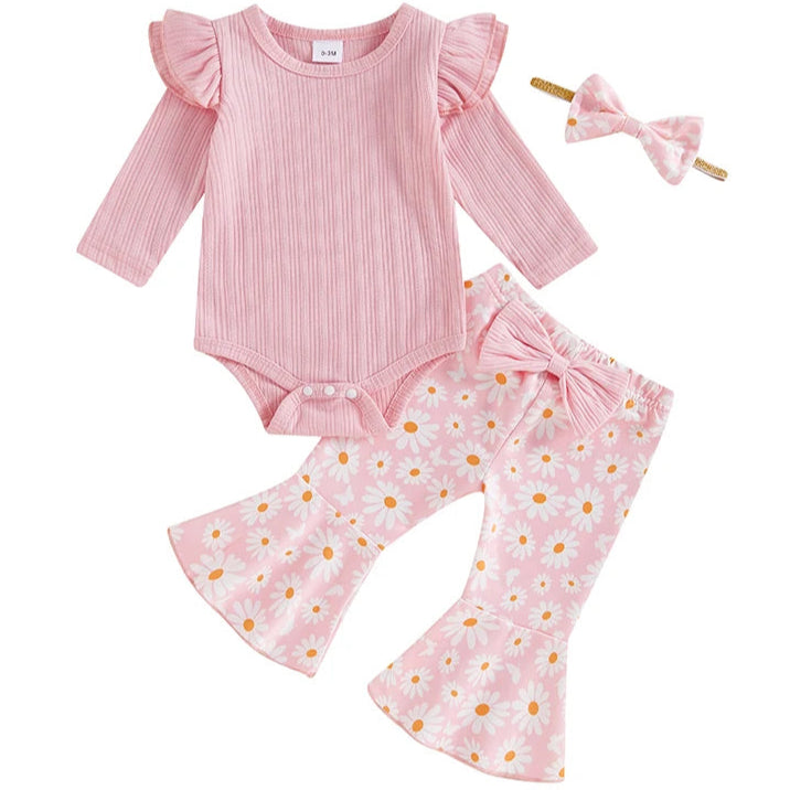 Pink Daisy Flare Set – Baby Girl 3-Piece Outfit