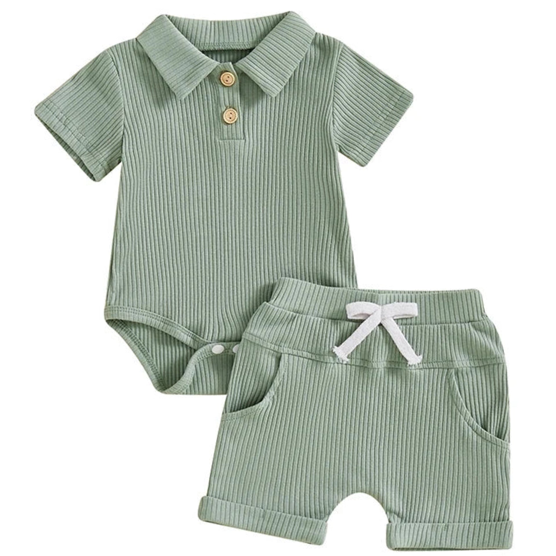Liam Polo Romper Set Green