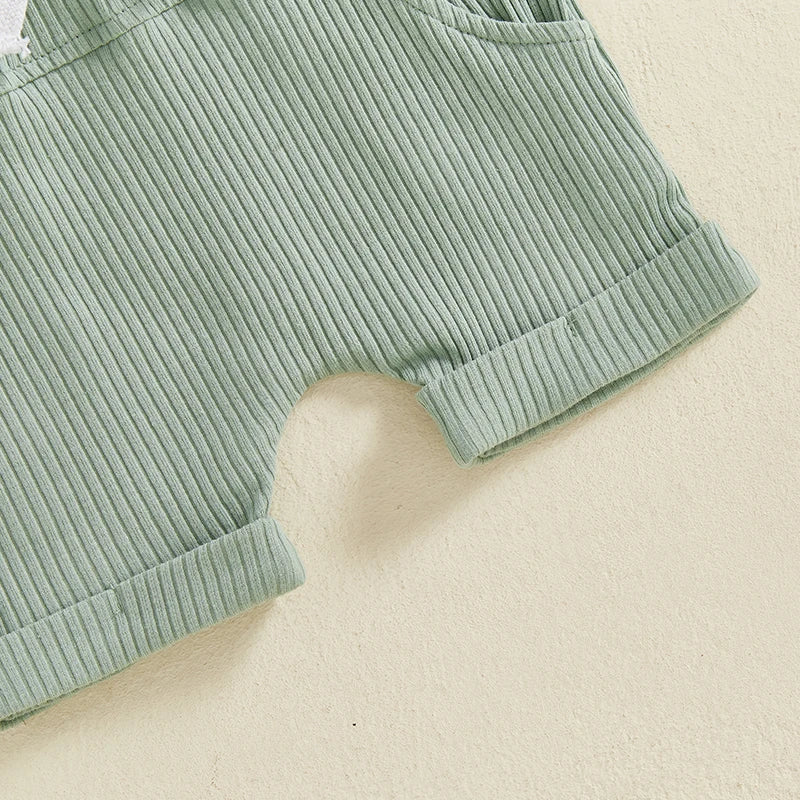 Liam little ribbed cotton blend romper in green with a polo neck and matching green ribbed shorts