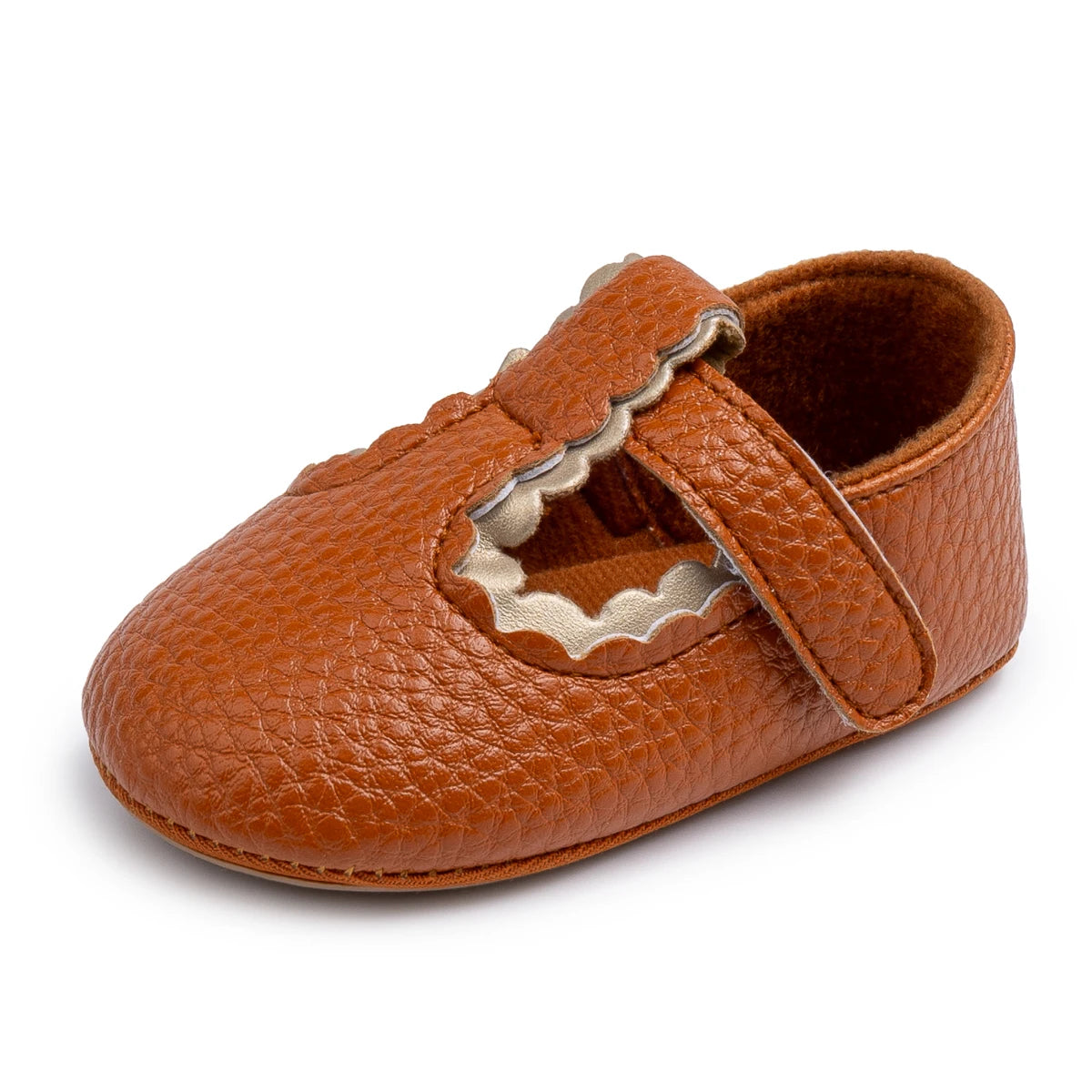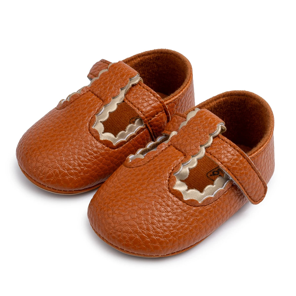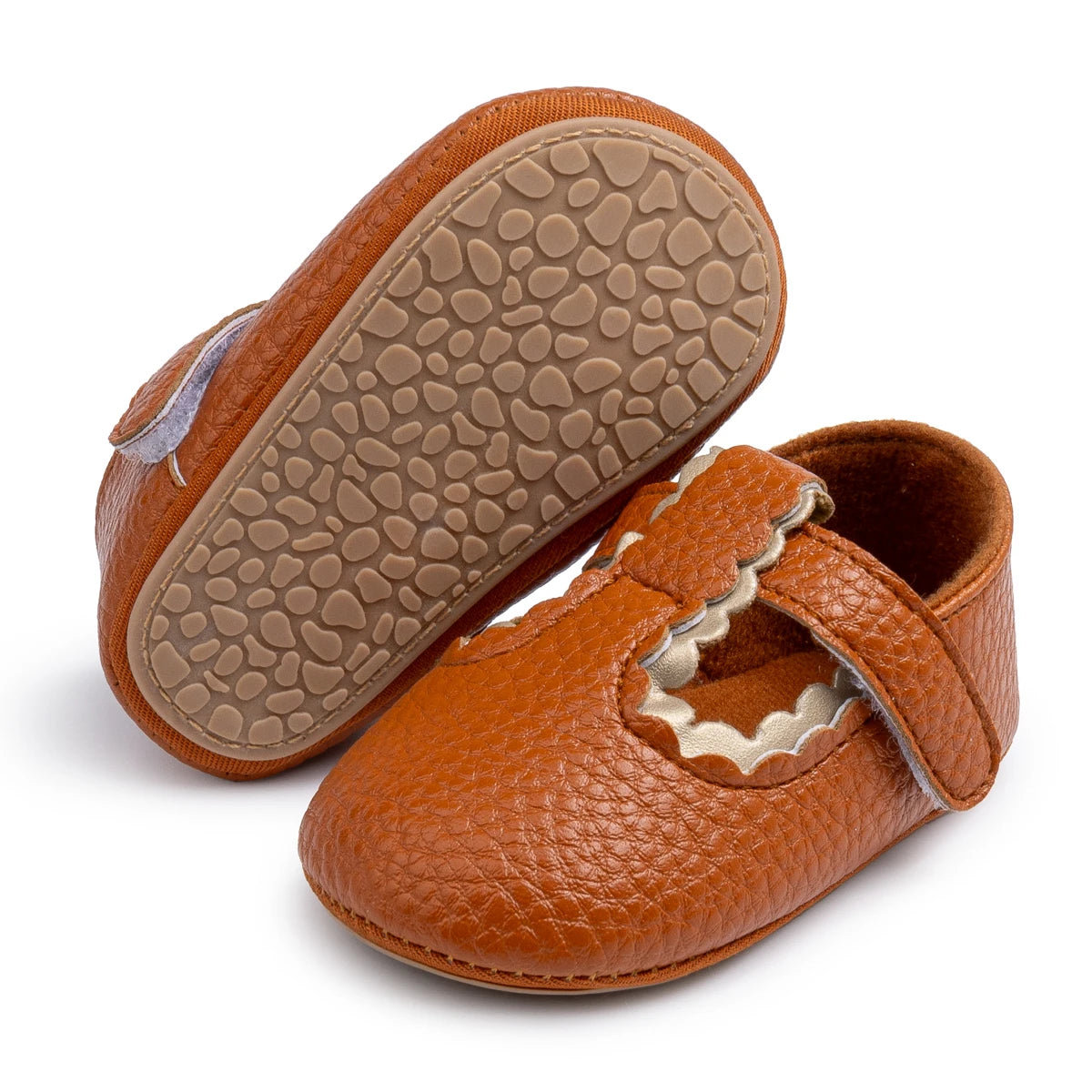 Elevate your baby girl’s wardrobe with the Liana T-Bar Baby Shoes in Tan – a beautiful, earthy-toned pair designed for both comfort and milestone moments. The flexible, grip-enhanced sole supports little feet as they transition from crawling to walking. The Velcro T-bar design makes getting ready fuss-free, while the polished tan finish adds a touch of charm to any ensemble. Ideal for autumn outfits, family photos or everyday playdates.