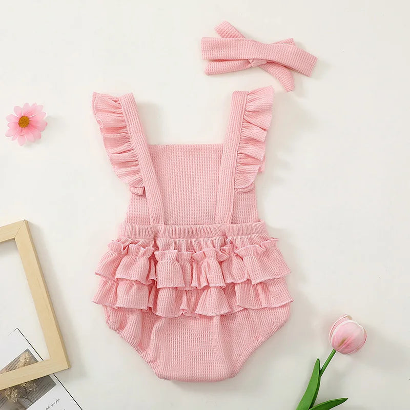 Make every moment picture-perfect with our Pink Waffle Flutter Romper - a sweet, comfortable and beautifully detailed outfit designed for everyday wear, Christmas photos, special occasions and warm-weather outings.