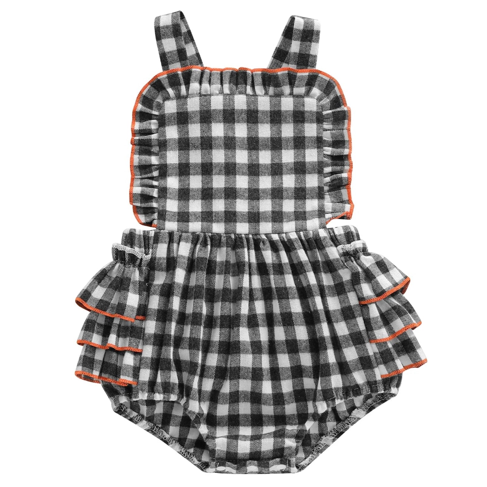 Gingham Ruffle Baby Girl Romper Black